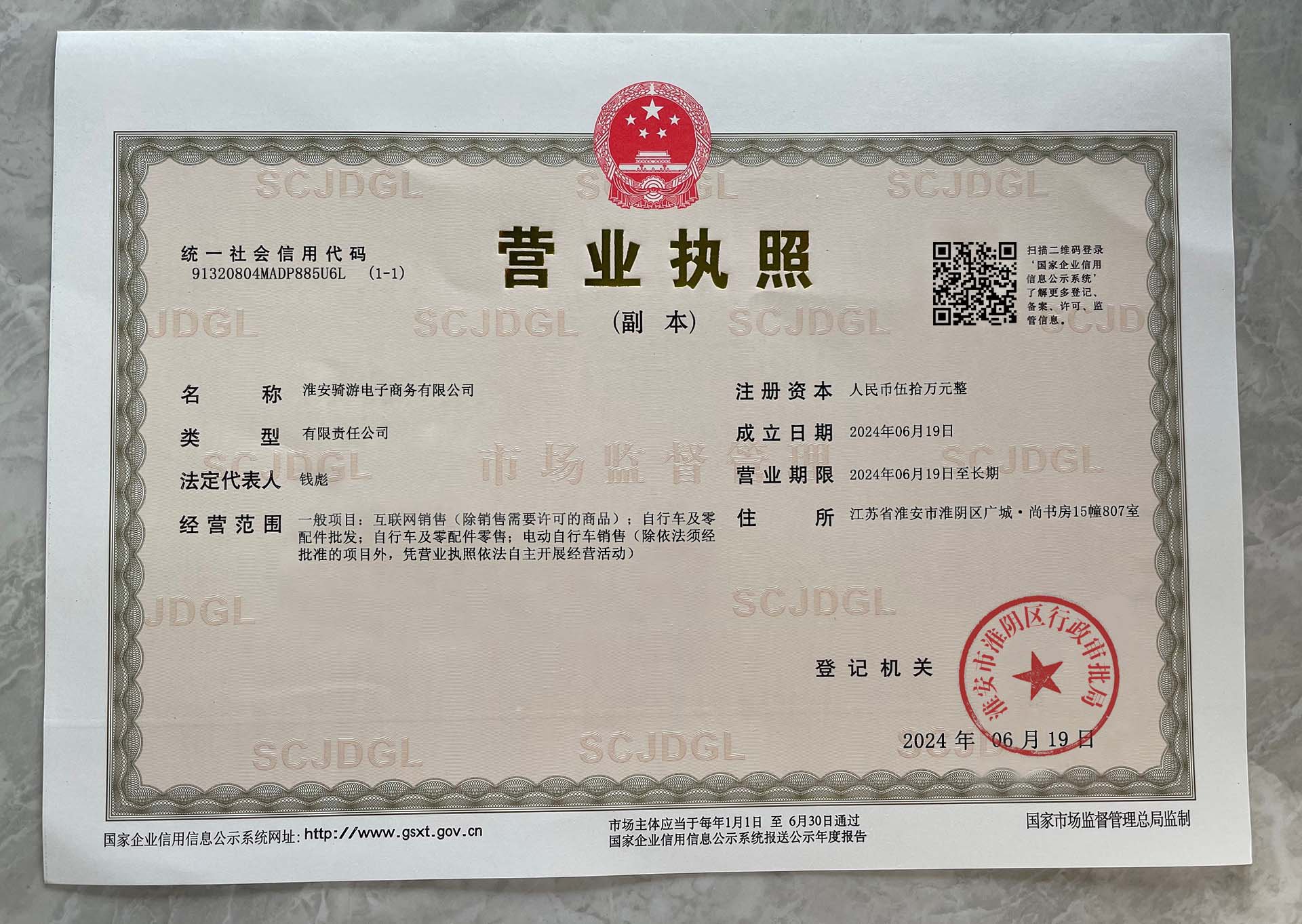 Corporate name:Huaian Qiyou E-commerce Co., Ltd.
